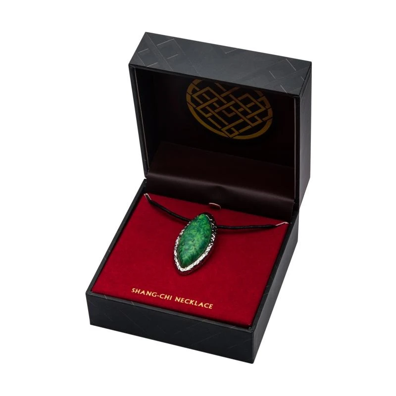 This replica of Shang-Chi’s jade pendant that he wears in “Shang-Chi: The Legend of the Ten Rings” is perfect for everyday wear as well as cosplay. Fans will love the authentic detail in this pendant, which hangs from a black cord.